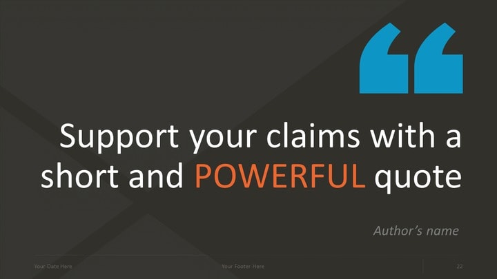Further approach with regard to powerpoint templates quotes showeetcom Using quotes in a presentation is a powerful technique to make your message more memorable, to reinforce your claim or to support your story.That is why this Quotes Free PowerPoint Template is perfect for your next presentation that is going to involve quotes.