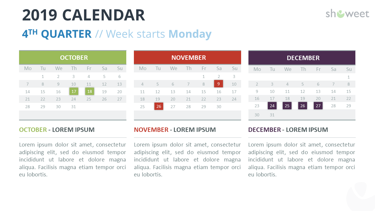 Additional theory intended for october powerpoint calendar slidemodel When it comes to finding great calendar template designs, or any good template really, don't overlook Envato Elements for the best 2019 PowerPoint calendar template downloads. Envato Elements is a great deal, you can download as many templates as you want—not just PowerPoint calendar template designs—for one low price.