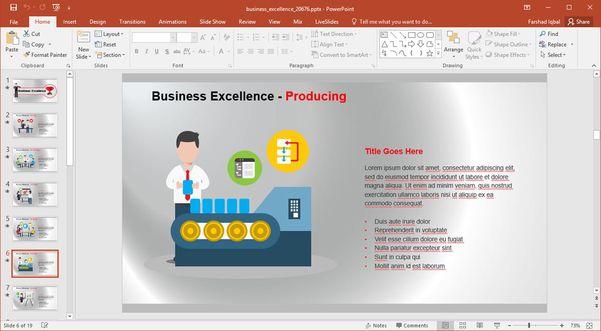 Additional approach to get production fppt The Animated Factory Production PowerPoint Template comes with 12 sample slides that provide animations depicting a production process in a factory.With top-notch graphics, animated assembly line layouts and editable objects; this template can be a great resource for making presentations about production processes, factories, blue collar workers, supply chains, etc.